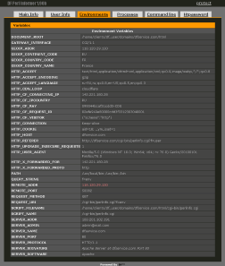 - Перечислены все переменные окружения в алфавитном порядке (Environment Variables): DOCUMENT_ROOT, GATEWAY_INTERFACE, GEOIP_ADDR, GEOIP_CONTINENT_CODE, GEOIP_COUNTRY_CODE, GEOIP_COUNTRY_NAME, HTTP_ACCEPT, HTTP_ACCEPT_ENCODING, HTTP_ACCEPT_LANGUAGE, HTTP_CDN_LOOP, HTTP_CF_CONNECTING_IP, HTTP_CF_IPCOUNTRY, HTTP_CF_RAY, HTTP_CF_REQUEST_ID, HTTP_CF_VISITOR, HTTP_CONNECTION, HTTP_COOKIE, HTTP_HOST, HTTP_REFERER, HTTP_UPGRADE_INSECURE_REQUESTS, HTTP_USER_AGENT, HTTP_X_FORWARDED_FOR, HTTP_X_FORWARDED_PROTO, PATH, QUERY_STRING, REMOTE_ADDR, REMOTE_PORT, REQUEST_METHOD, REQUEST_URI, SCRIPT_FILENAME, SCRIPT_NAME, SERVER_ADDR, SERVER_ADMIN, SERVER_NAME, SERVER_PORT, SERVER_PROTOCOL, SERVER_SIGNATURE, SERVER_SOFTWARE.